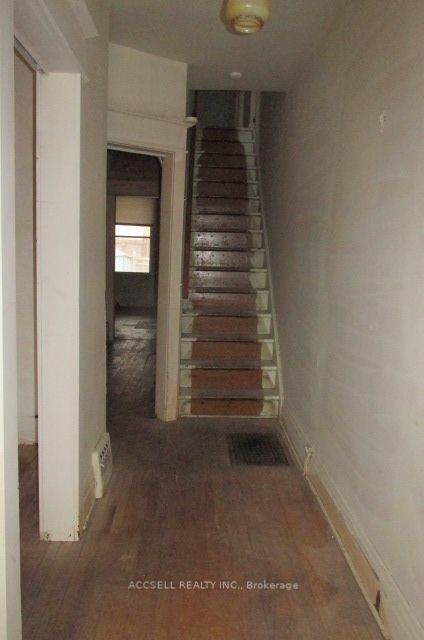 Our second affordable option for a freehold home is located just a few blocks north east of our first home, up in the Pelham Park neighbourhood.  It’s a townhouse that sits on a 15 ft wide by 120 ft deep lot and while there is no parking, the deep lot could allow for a garage or even laneway house off the public laneway behind the property.